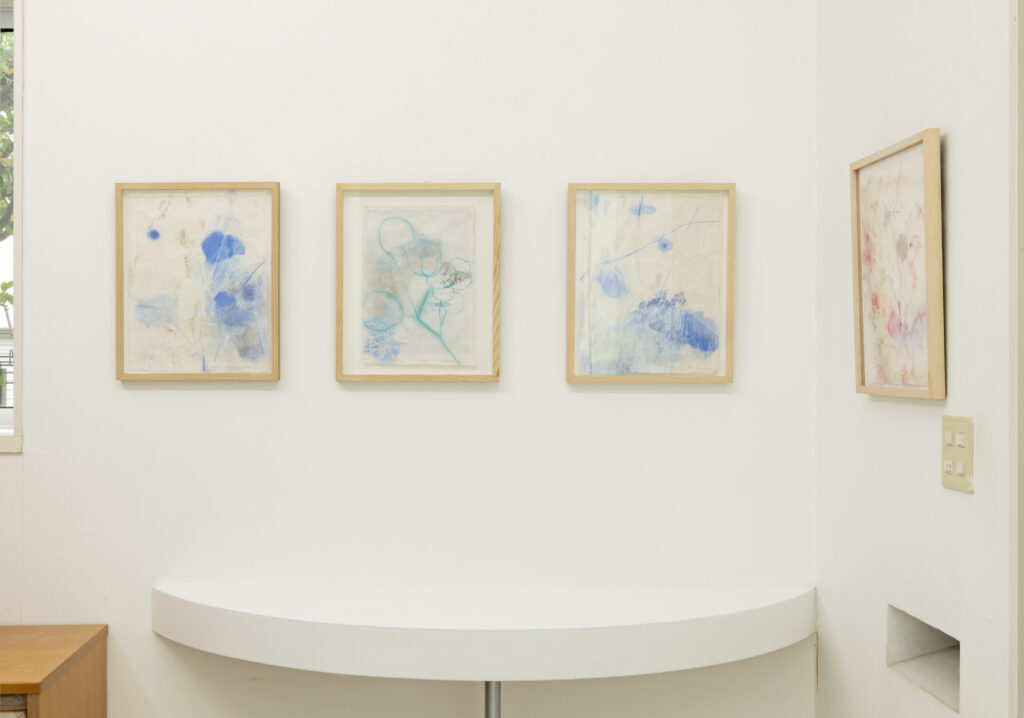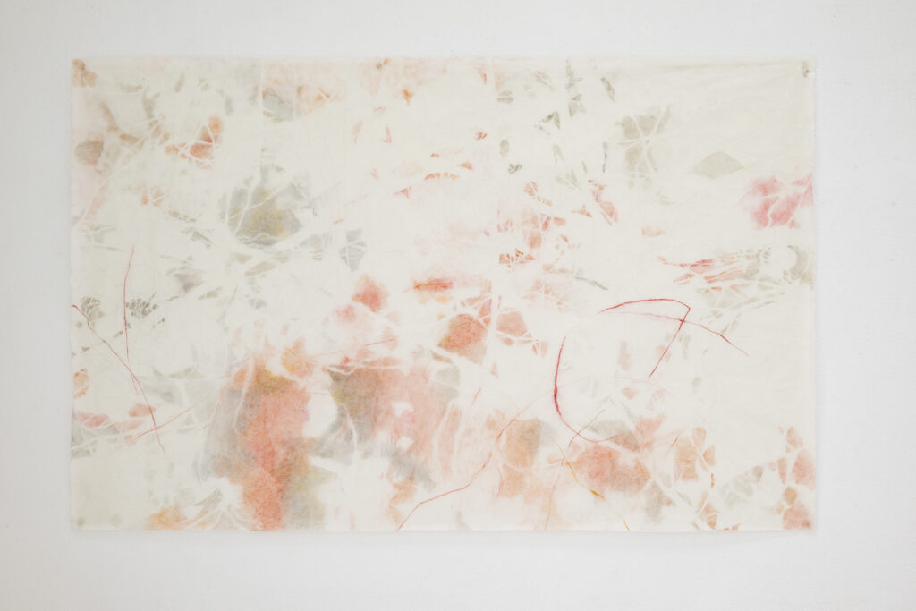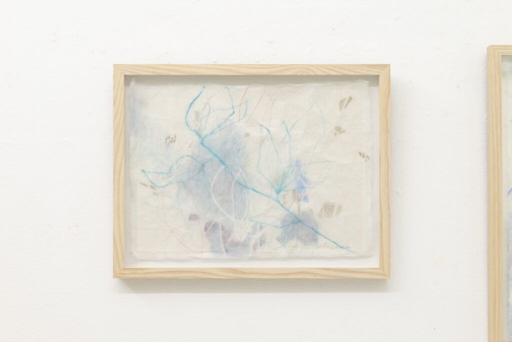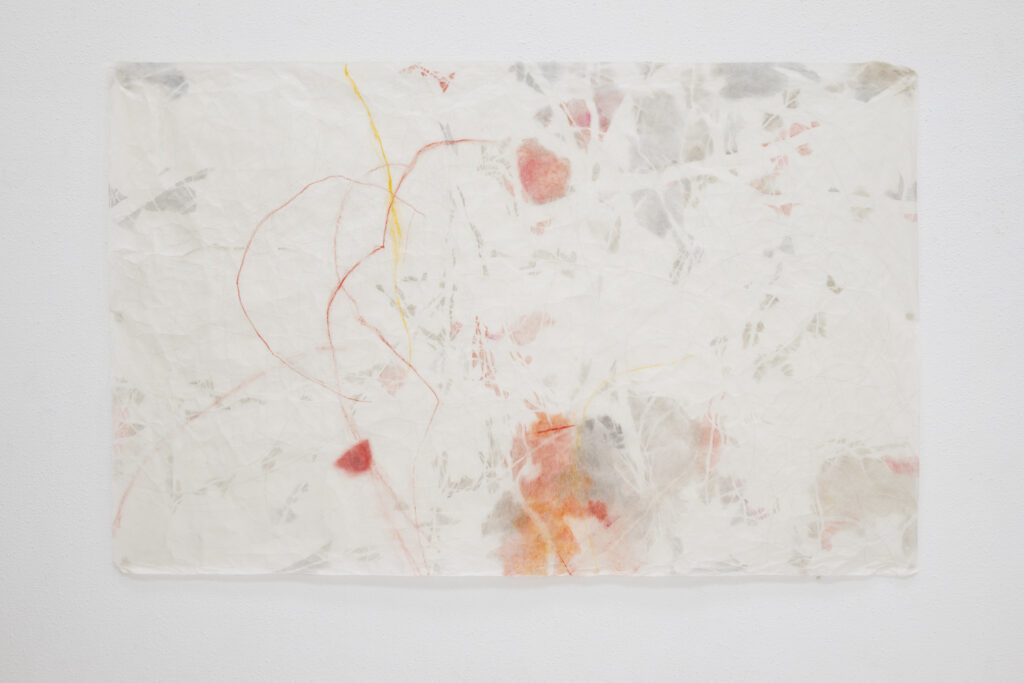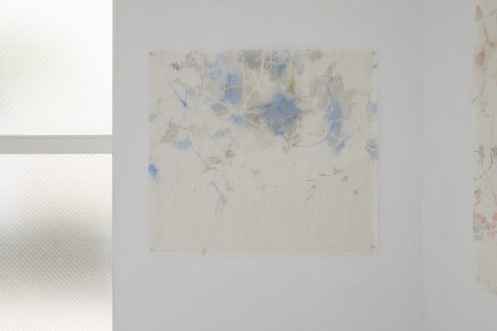 和紙を、描く行為に干渉し共に生成する場として機能させたい。その不確かさに身を置き、繊維や皺が示す微小な偏差を拾い集めて応答する。その反復のなかから植物的な脈絡を読み取っていく。それは描くことで和紙の構造を顕にしていくことであり、支持体そのものをつくることになっているのではないかと考えている。