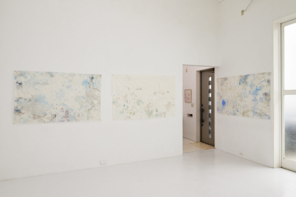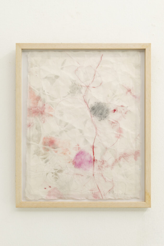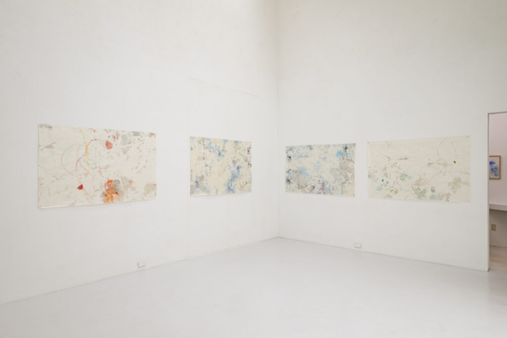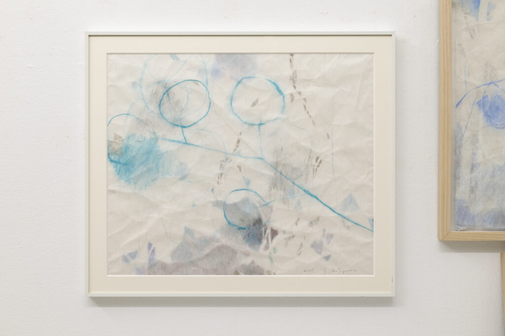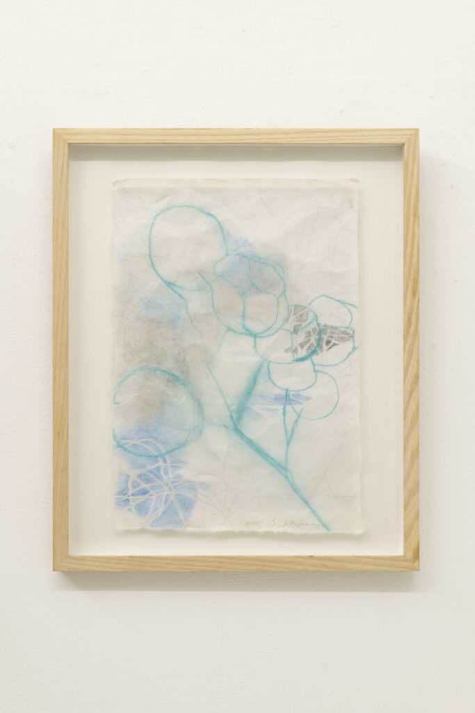 和紙を、描く行為に干渉し共に生成する場として機能させたい。その不確かさに身を置き、繊維や皺が示す微小な偏差を拾い集めて応答する。その反復のなかから植物的な脈絡を読み取っていく。それは描くことで和紙の構造を顕にしていくことであり、支持体そのものをつくることになっているのではないかと考えている。