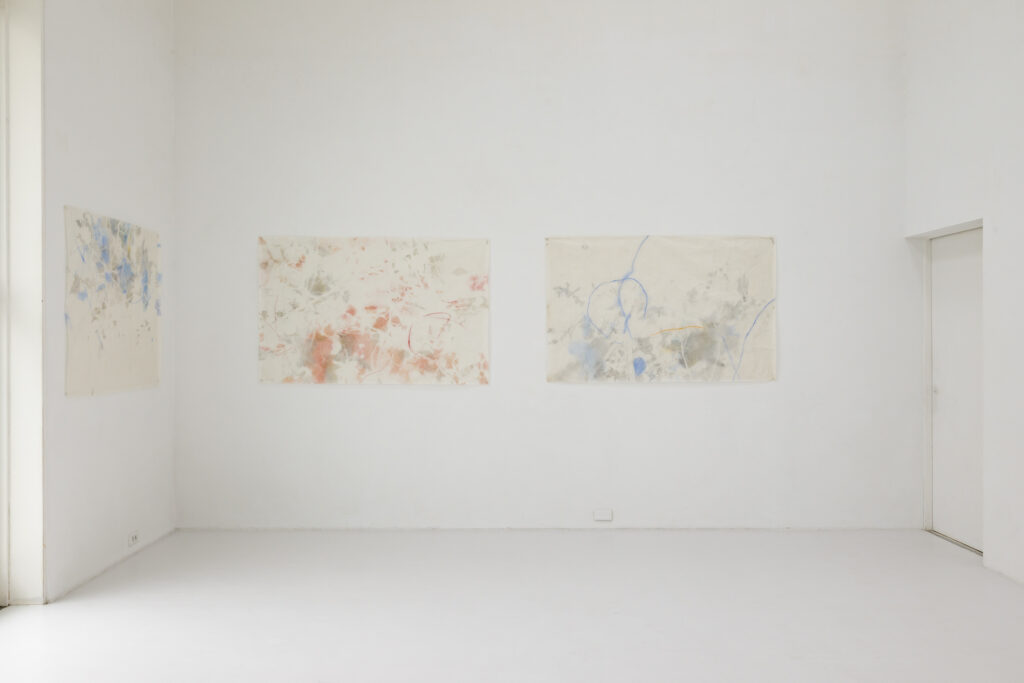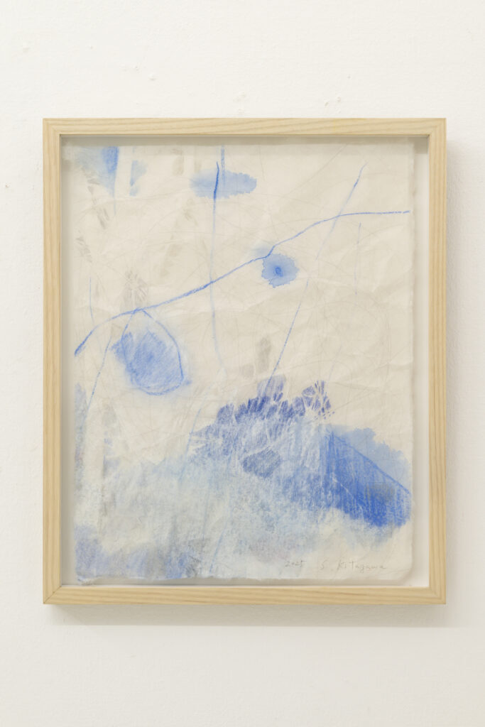 木炭やパステル、鉛筆や色鉛筆といった、物理的に厚みをあまりもたないドローイング素材を中心に用いて制作してきた。今回展示する作品は、7~8年前から試している素材で、薄い和紙に色鉛筆を主として用いたものだ。