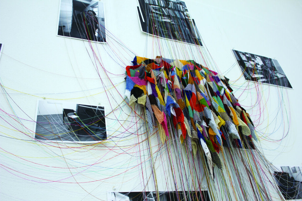 今回の作品は、学生時代に榎倉氏に言われた言葉が切っ掛けとなって、現れてきたものです。その言葉とは、「女はこの様な事を何も考えずに出来る」という事。私がある展示の為に、釣り糸を黙々と編んで大きなネット状の物を作っていた時の、繰り返しの作業についての感想でした。そしてこれを「念が籠っていて怖い」とも形容していたのです。私はこの言葉を受けて、はじめて作品の中の女性性というものを実感した瞬間でもありました。